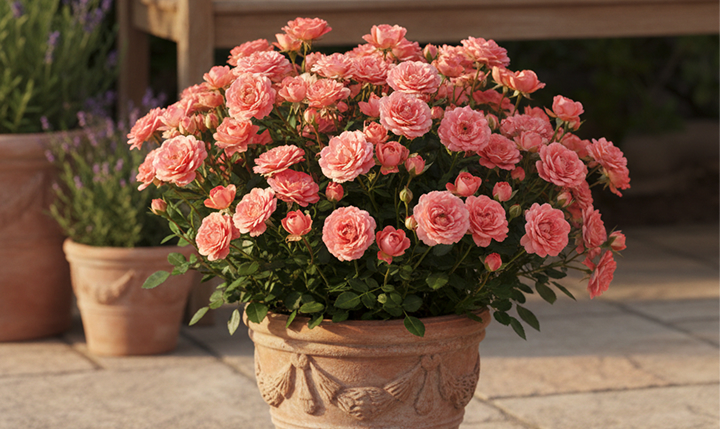 Розы патио – группа низкорослых роз, представляющих собой компактные формы флорибунды и чайно-гибридных роз. Название происходит от итальянского слова «patio» (внутренний дворик), что отражает их предназначение для небольших пространств.